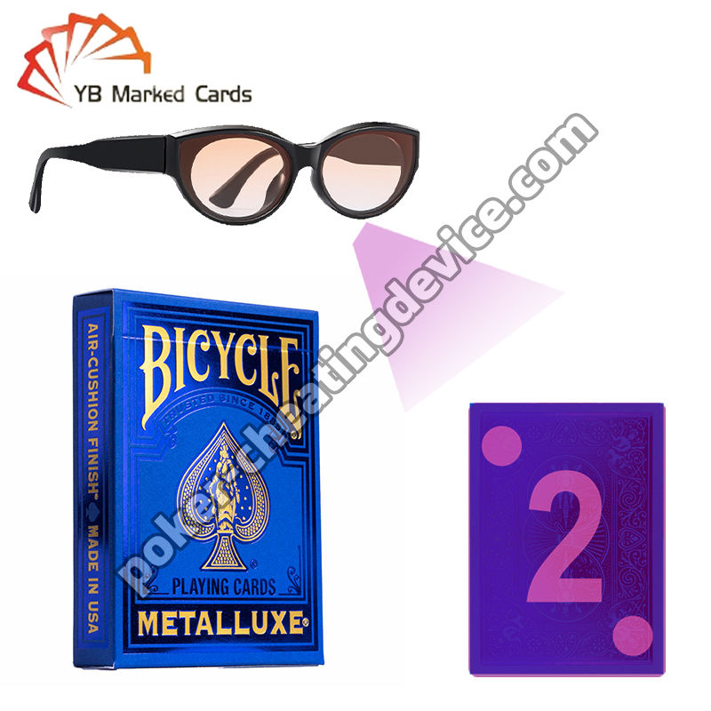 Bicycle Metalluxe Blue 2023 Görünmez Mürekkep Oyun Kartları'nı sunuyoruz canlı poker oyuncuları için en gelişmiş hile aracı.işaretleri çıplak gözle tamamen görünmez hale getirir.Sadece özel poker gözlükleri veya kızılötesi kontakt lensleri olan oyuncular gizli kodları görebilir.